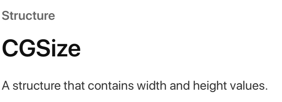 애플문서에서는 CGSize를 '너비 및 높이 값을 포함하는 구조' 라고 설명하고 있습니다.