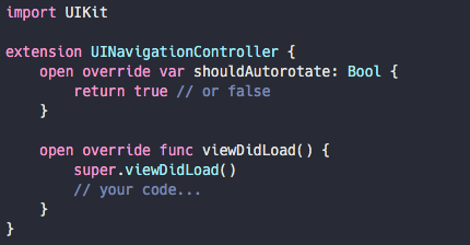 위 소스코드를 보면 Extension에서 shouldAutorotate라는 변수와 viewDidLoad라는 메소드를 Override하고 있고, 에러가 발생하지 않는 것을 볼 수 있다. 이러한 일이 가능한 이유는 컴파일러가 Objective-C와의 호환성을 위해 Extension에서 Override를 허용하기 때문이다. 즉, 메소드가 Objective-C와 호환되는 경우에만 Extension에서 메소드를 Override 할 수 있다는 것이다.